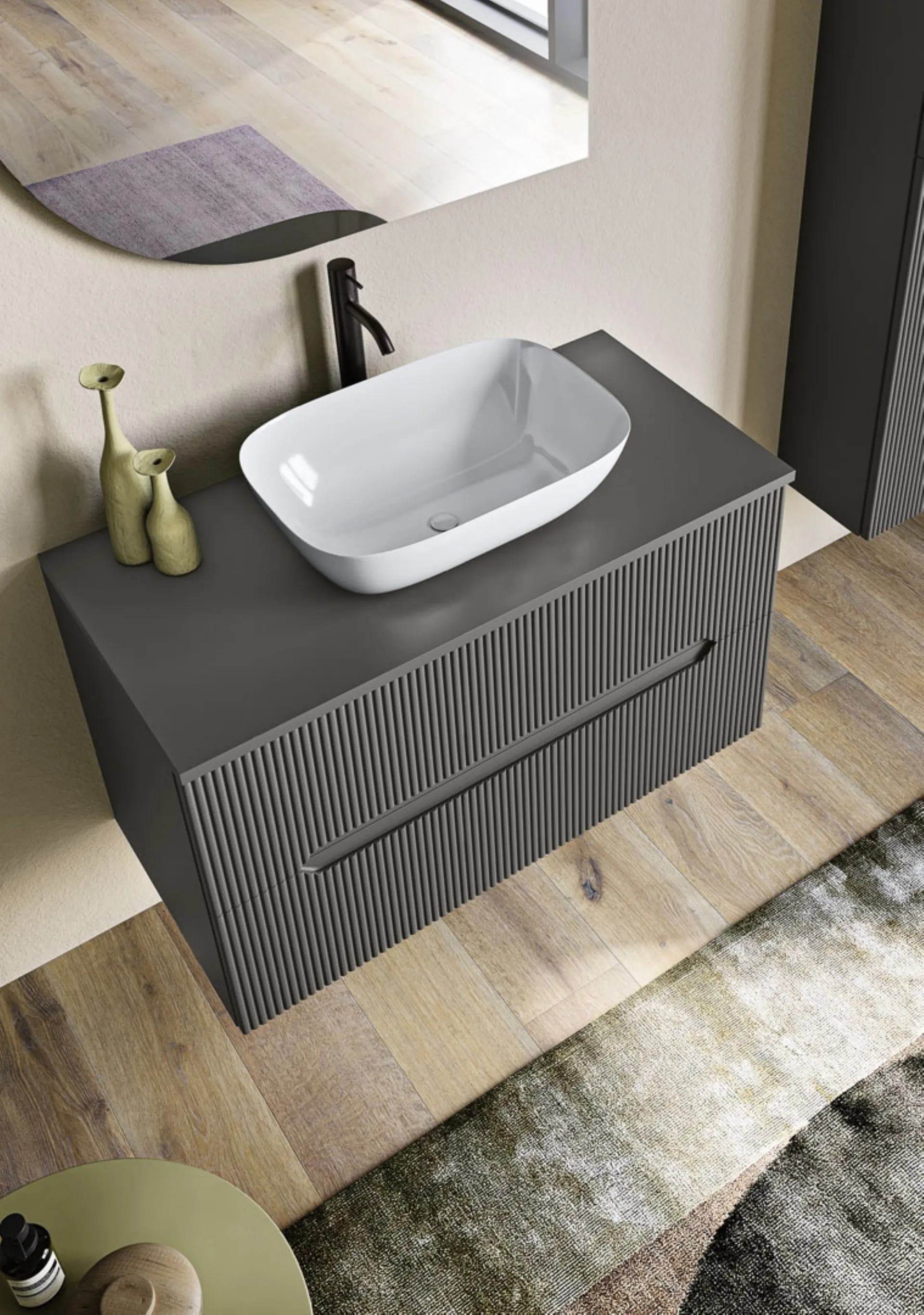 Il modello di Mobile da Bagno sospeso Balos Antracite di Modo Bluelife in polimerico ultima il locale coniugando al meglio doti di stile con ergonomia e sicurezza. Nel nostro punto vendita potrai scoprire diverse soluzioni di composizioni by Modo Bluelife per personalizzare lo spazio di casa dedicato alle pratiche di cura personale. La sala da bagno oggi non è più solo un locale di servizio: alla sua progettazione viene dedicata la stessa attenzione degli altri locali di casa. In showroom troverai non solo wc e bidet, ma anche tutti gli altri elementi accessori inclusi nel progetto per il bagno: scopri le più originali proposte di mobili bagno sospesi. L’Arredo Bagno moderno dei più noti brand garantisce oggigiorno elementi componibili per dare vita a ambienti di grande design e organizzati ottimamente.