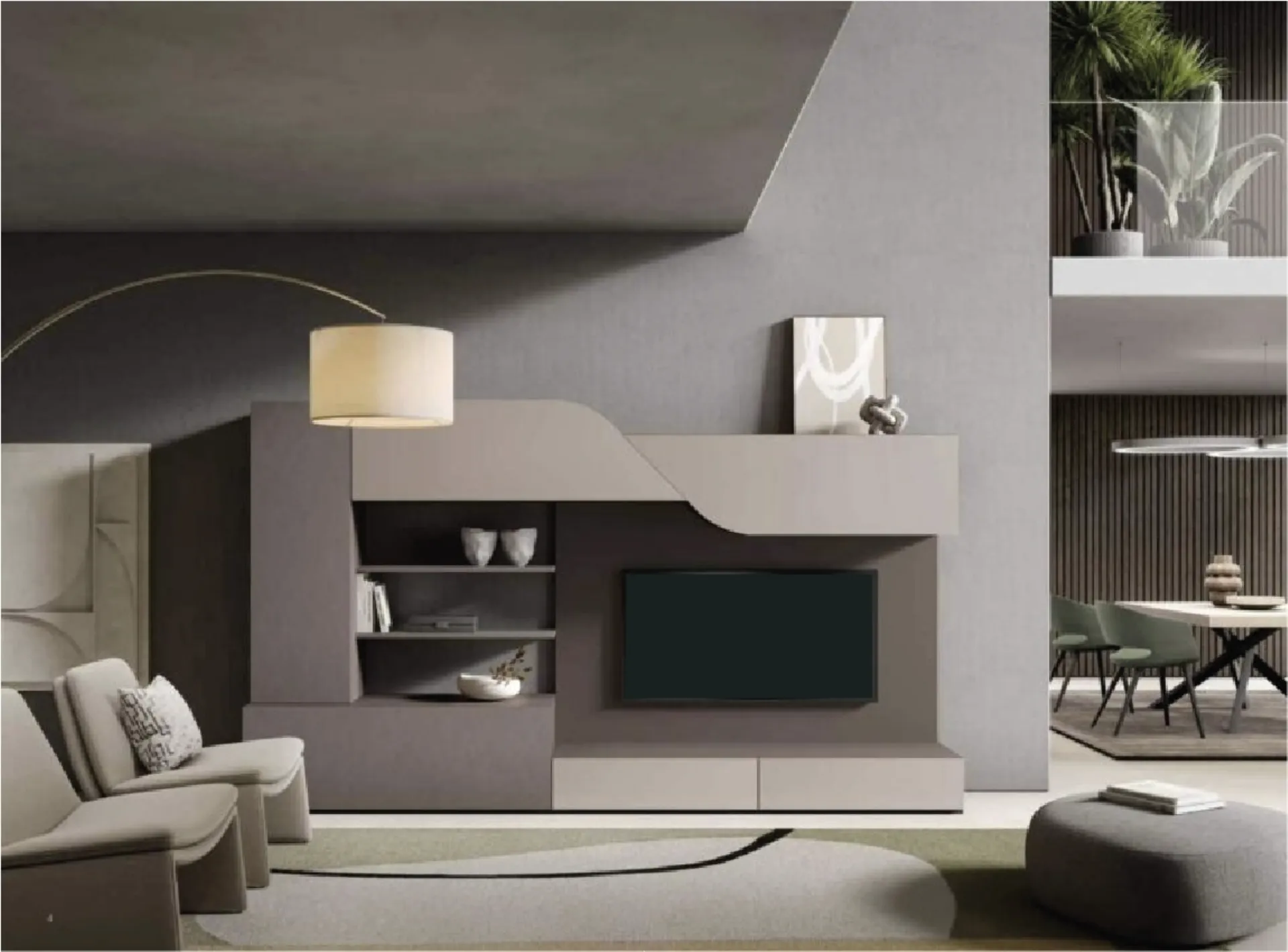 La Parete Attrezzata Velvet 4-0 A4 di Artigianmobili nella fotografia è una tra le più originali soluzioni d’arredo sul mercato: componibilità su misura e le diverse opportunità di progettazione la rendono funzionale ed esteticamente gradevole. Artigianmobili produce inediti modelli di mobili soggiorno, diversi per stile e conformazioni, texture e componenti: scopri nel nostro punto vendita l'Arredamento Casa dei migliori produttori. Visto che il soggiorno deve essere uno spazio agevole e di grande valore estetico, sono molto utili alcuni arredi belli e pratici come le Pareti Attrezzate. I mobili soggiorno in melaminico dalle linee moderne come il modello nella fotografia sono davvero versatili e capaci di progettare il living valorizzando ogni angolo.