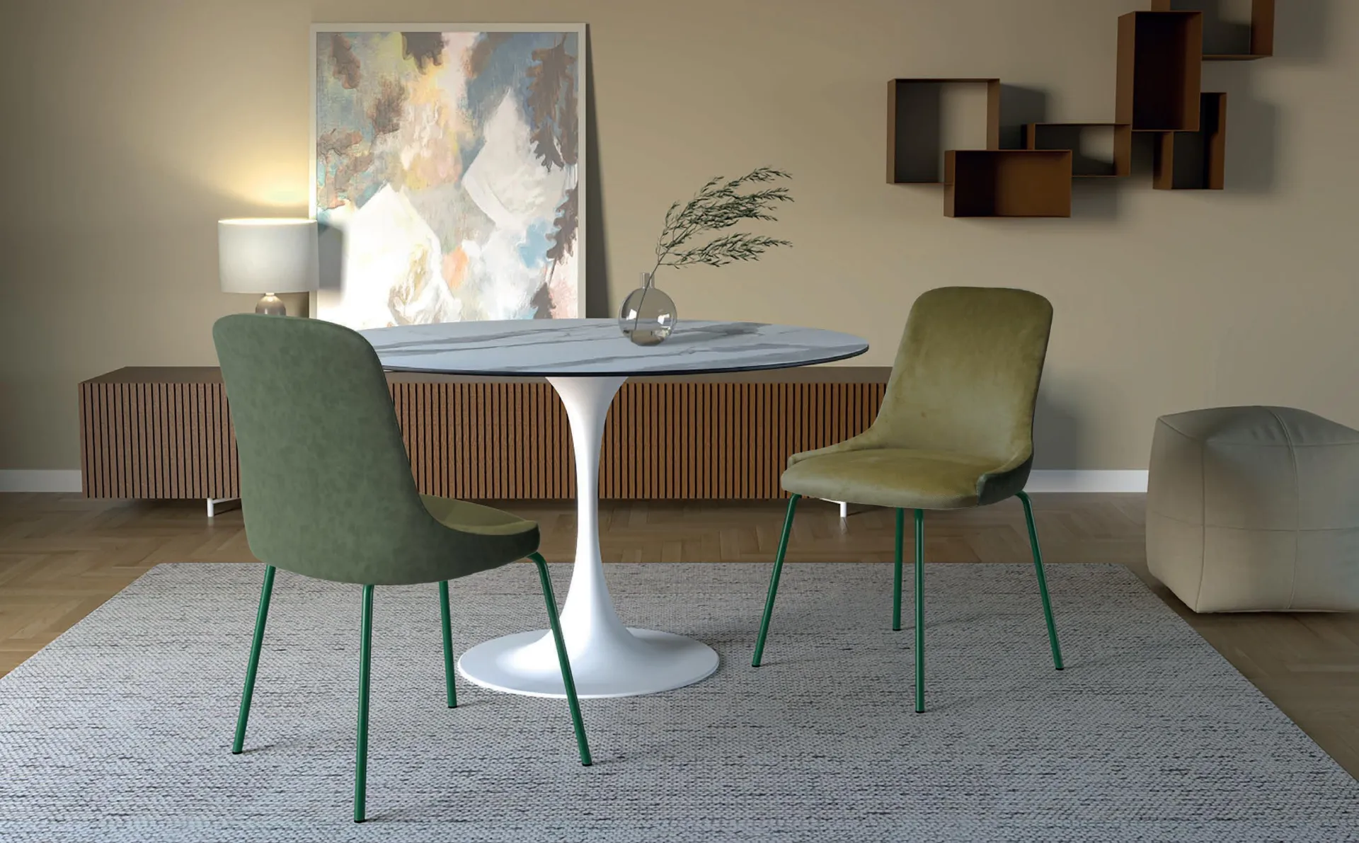 Con questa soluzione comoda, ergonomica e esteticamente gradevole potrai ultimare il tuo concept d'arredo e impreziosire la stanza dove si socializza con familiari e amici. Sbirciare tra le nostre soluzioni in tessuto ti permetterà di trovare il modello da pranzo che hai sempre sognato. La zona cucina e il dining non saranno veramente complete senza le giuste Sedie, da abbinare al resto degli arredi e allo stile dei tuoi interni. Sedia Chanel di Abitare Interior: opta per una tra le più originali proposte dell'azienda, specialista del settore Arredamento Casa. Un ricco catalogo di mobili e complementi ti sta aspettando nel nostro punto vendita, dove potrai trovare le Sedie fisse in tessuto delle migliori marche.